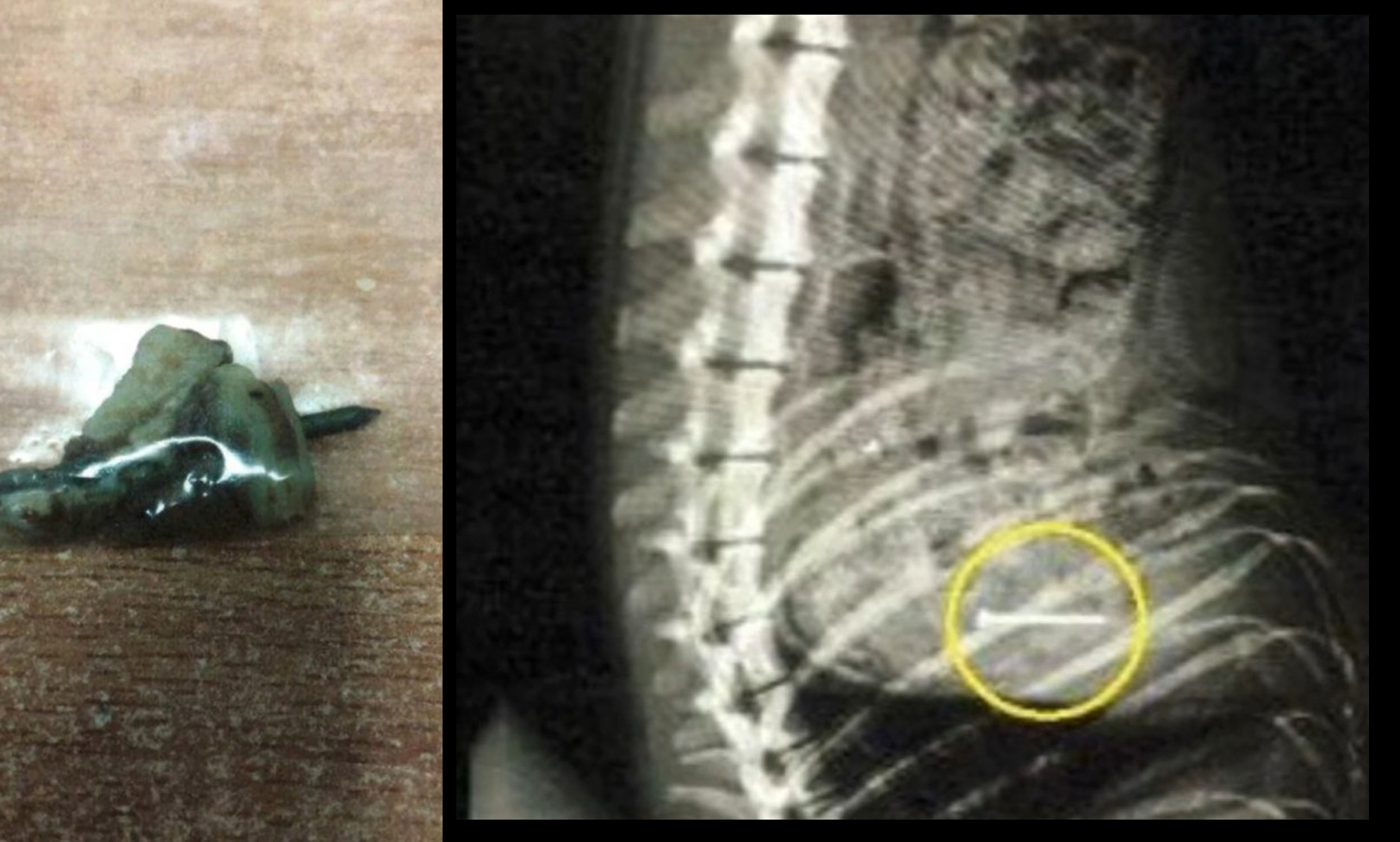 Majiteľka psa si pri prechádzke v parku všimla, že jej pes niečo zožral. Pretože si na to dáva pozor, okamžite zareagovala a vytiahla svojmu miláčikovi z huby klinec. Táto situácia sa opakovala, tentoraz panička psa zachránila pred ostrou skrutkou.