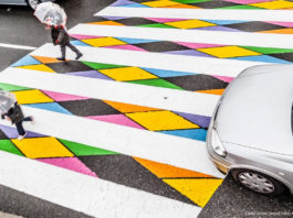 Umelec premenil prechody pre chodcov vo farebné mozaiky