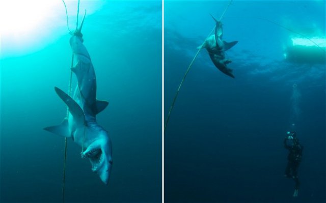 Takmer stodvacetikilový predátor mal prebodnutú hruď, chvostom bol priviazaný k povrazu od bójky. Visel tu takto minimálne niekoľko dní. „Bol to krutý obraz, skoro dvojmetrový žralok visiace za chvost,“ povedal telegraph.co.uk Westerdyk, ktorý sa v ten deň potápal s ďalšími mužmi.